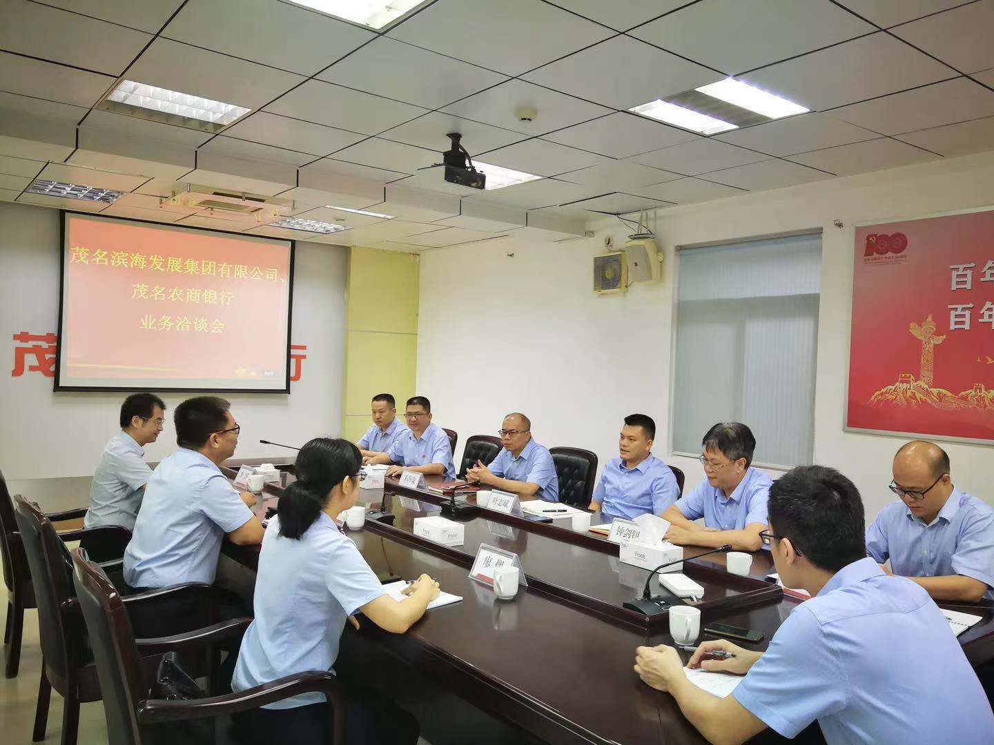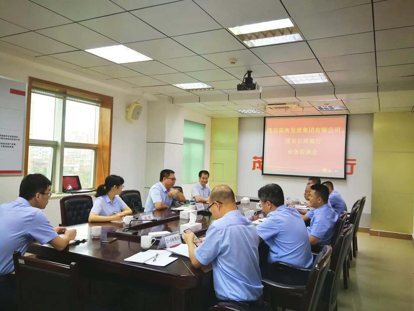7月19日上午,茂名濱海發展集團黨委書記、董事長黃遠維帶隊拜訪茂名農商銀行,雙方就項目融資、產業合作等有關事宜進行洽談,并達成合作意向。茂名農商銀行行長葉志斌,副行長鐘劍釗、朱海龍;茂名濱海發展集團黨委委員、副總裁李滔等參加座談會。