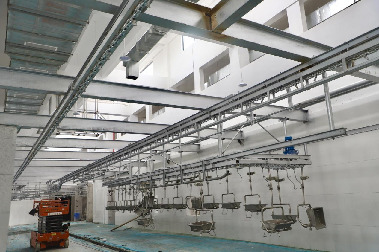 李滔一行實地考察了禽畜屠宰冷鏈加工產業基地在建中的企業生豬屠宰車間、肉食品深加工車間、冷鏈預冷車間以及日處理2500噸污水處理設施等冷鏈配套設施,詳細了解冷鏈屠宰加工項目規劃、建設規模、后期運營、行業管控、政策扶持等相關情況。