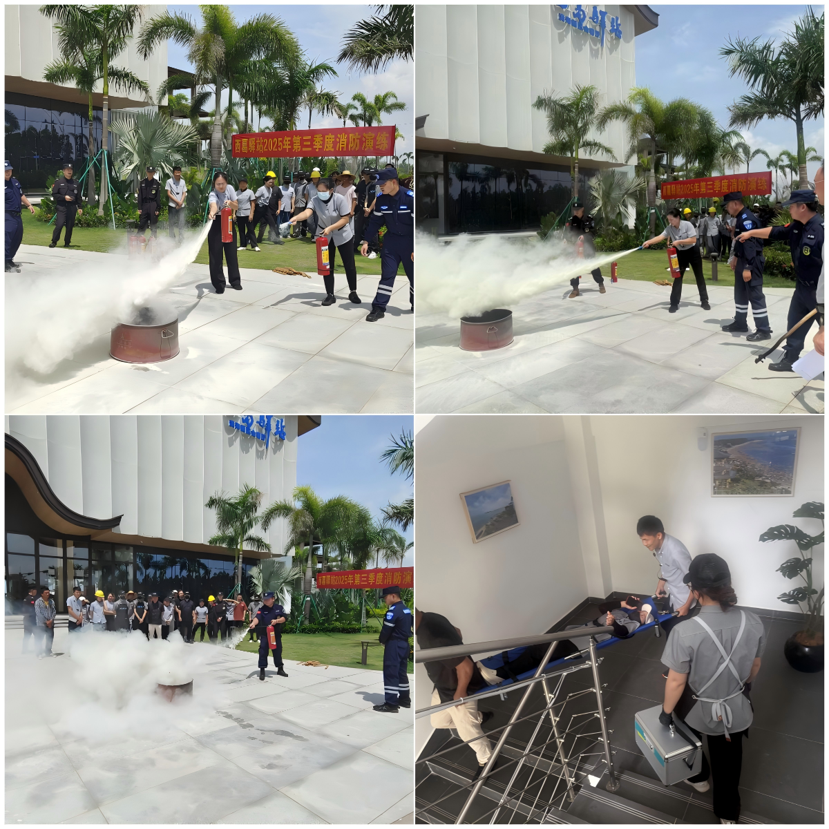 滅火器及消防水帶操作及火災(zāi)疏散演練是本次活動的高潮部分。教練員首先講解了滅火器的種類、使用方法及注意事項(xiàng),隨后在驛站前廣場點(diǎn)燃火源,讓員工們親自體驗(yàn)滅火過程。員工們在教練員的指揮下,迅速拿起滅火器,按照“一提、二拔、三握、四壓”的步驟,成功將火源撲滅。火災(zāi)疏散演練模擬了火災(zāi)發(fā)生時(shí)的場景,員工們在教練員的引導(dǎo)下,用濕毛巾捂住口鼻,彎腰低姿,快速有序地從安全通道撤離到指定地點(diǎn),整個(gè)過程緊張有序,達(dá)到了預(yù)期效果。