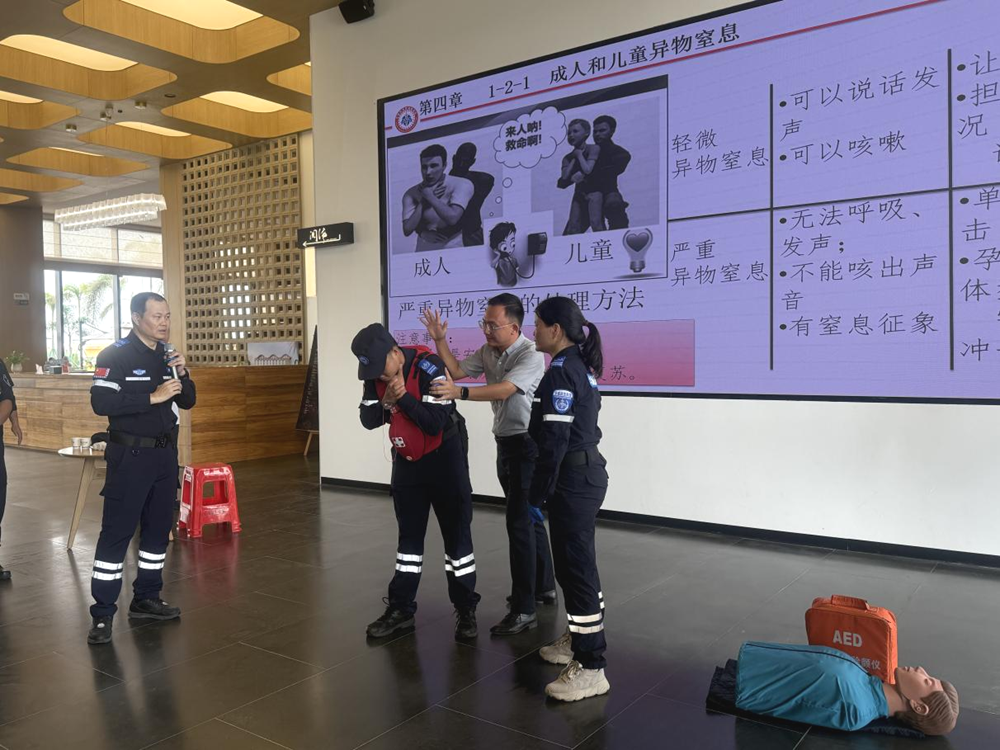 海姆利克急救法是應(yīng)對氣道異物梗阻的有效方法。教練員通過生動的模擬裝備講解和現(xiàn)場演示,讓員工們深刻認(rèn)識到氣道異物梗阻的危險(xiǎn)性,并詳細(xì)介紹了海姆利克急救法的操作要點(diǎn),包括站位、手法、力度等。員工們在模擬練習(xí)中,互相配合,反復(fù)練習(xí),確保能夠熟練掌握這一急救技能。
