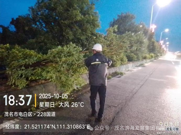 今年第21號臺風“麥德姆”強勢來襲,為茂名濱海新區帶來嚴峻風雨考驗。在濱海新區的部署和茂名濱海發展集團統一指揮下,集團道路養護中心搶險隊(以下簡稱養護中心搶險隊)迅速響應、晝夜堅守,在防汛防風一線構筑起堅實的“道路安全屏障”,充分彰顯了高效的應急處置能力。