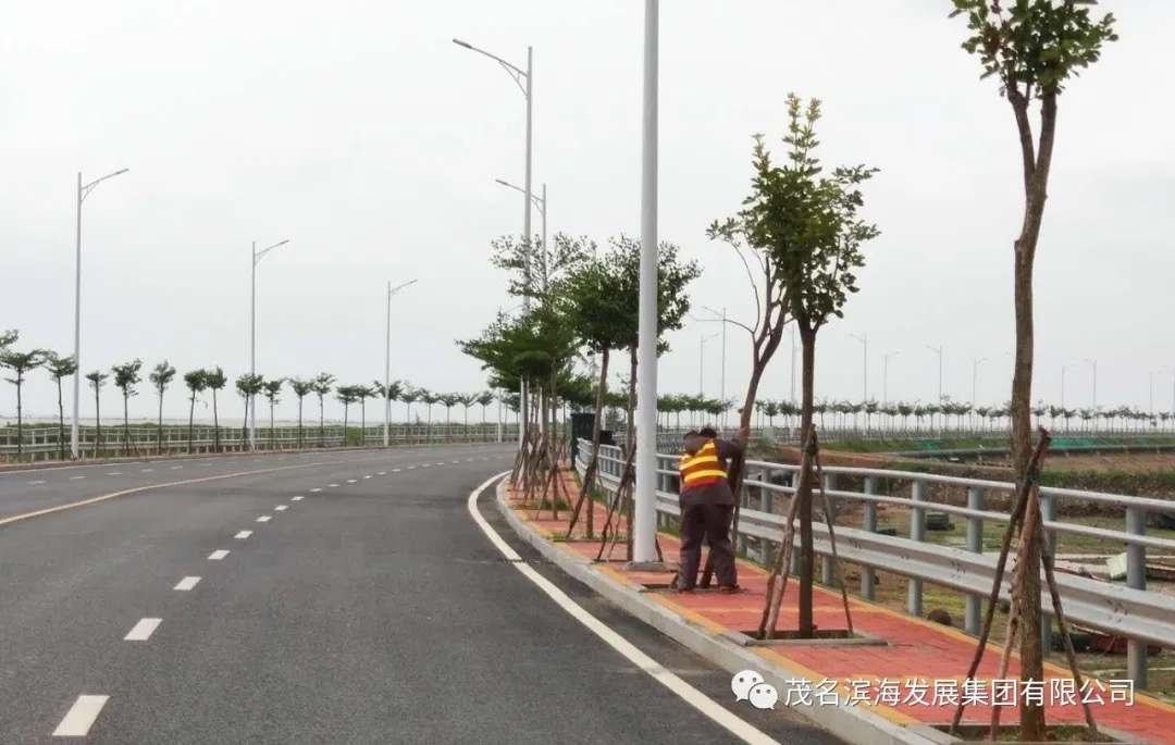 巡查過程中,發現博賀灣大橋、茂名港大道兩旁綠化樹苗受臺風影響,中間護欄網受損影響交通安全,隨即迅速組織人員對路旁扶倒樹進行處理,確保道路暢通。